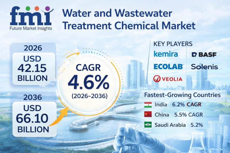 The global Water and Waste Water Treatment Chemical Market is entering a decade of compliance-driven transformation. Valued at USD 40.30 billion in 2025, the market is projected to reach USD 42.15 billion in 2026 and expand further to USD 66.10 billion by 2036. According to analysis by Future Market Insights (FMI), the sector is forecast to grow at a CAGR of 4.60% during 2026-2036.